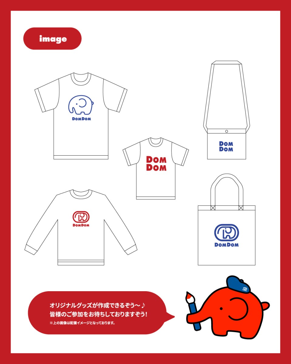 ・1アイテムにつき1プリントとなります。(例:TシャツMサイズ+DOM DOMロゴ)